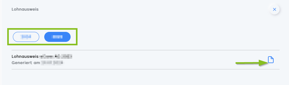 Die Ansicht für den Download des Lohnausweises öffnet sich. Wähle das Jahr und klicke auf das Blattsymbol, um den Lohnausweis herunterzuladen.