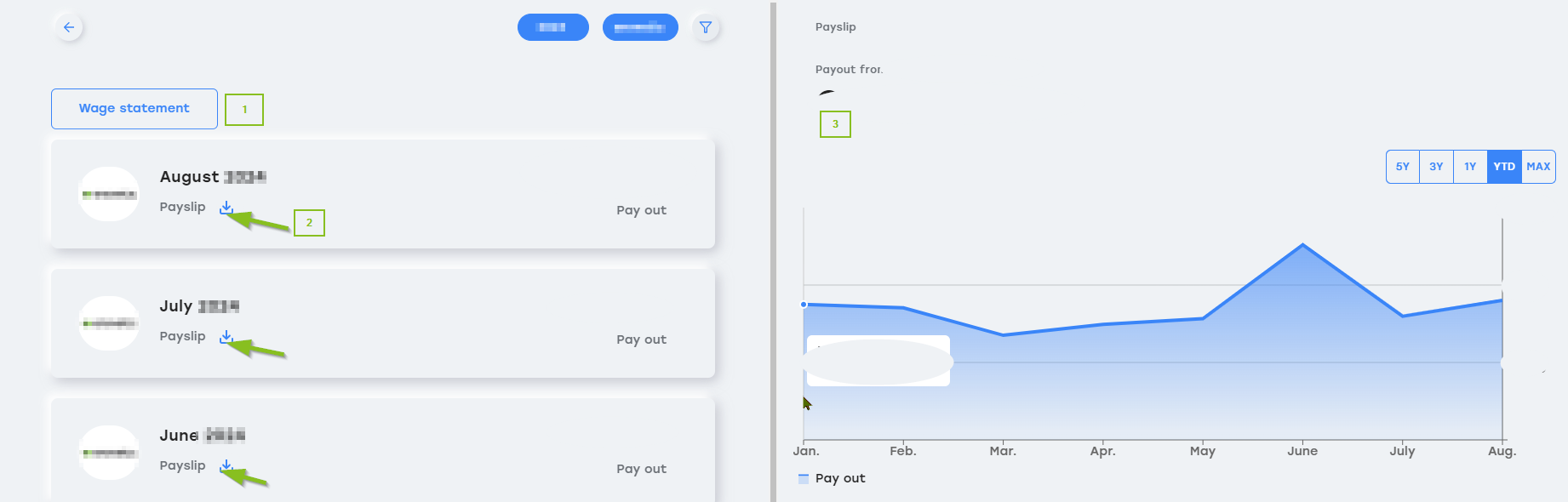Here you can download payslips and view further information.