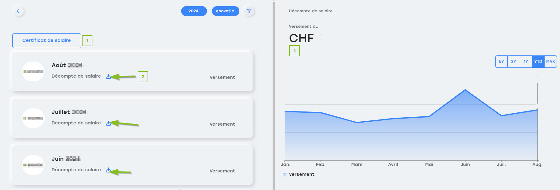 Ici, tu peux télécharger les fiches de salaire et consulter d'autres informations.