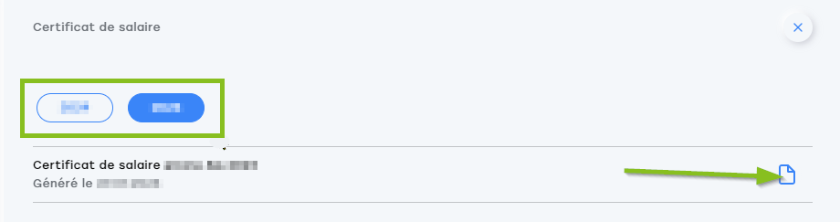 En haut à gauche, tu trouveras le bouton « Certificat de salaire », clique dessus.