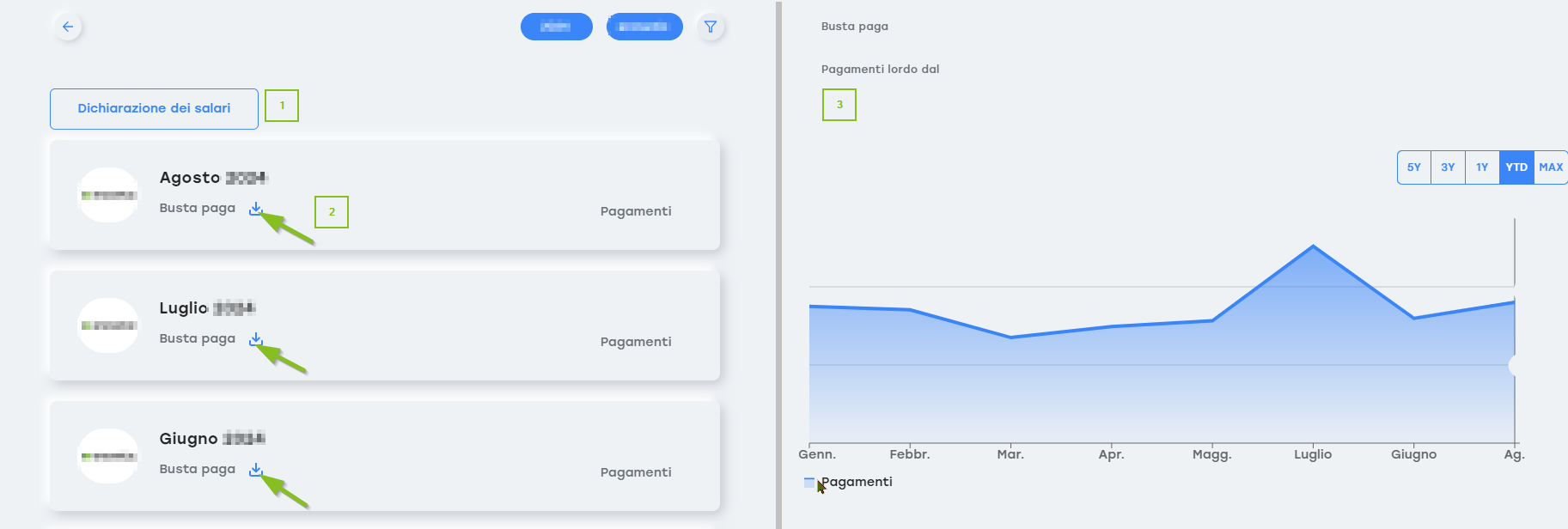Qui è possibile scaricare le buste paga e visualizzare ulteriori informazioni.
